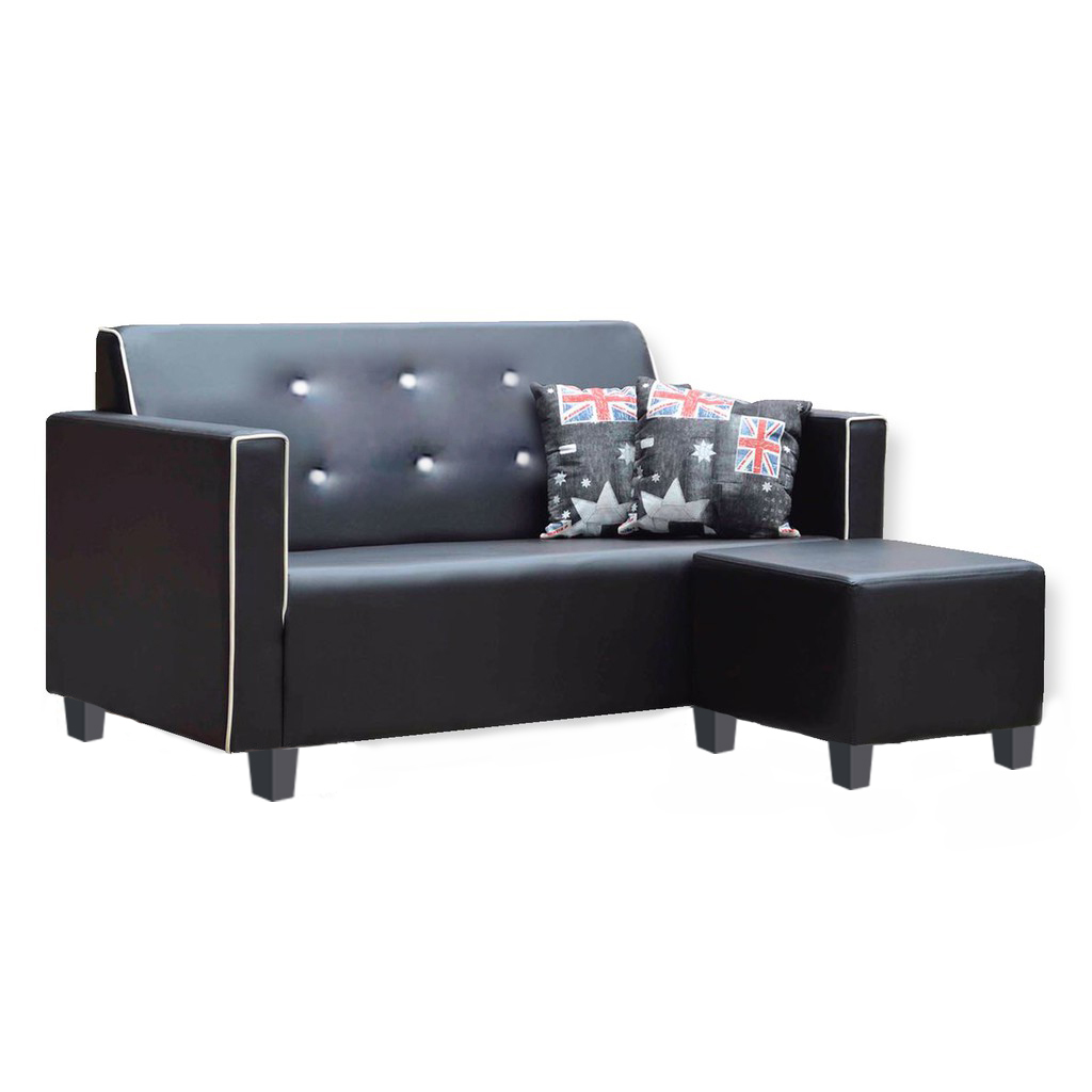 LIVING MALL Onana Faux Leather Modern Sofa In Black, Beige, And Brown