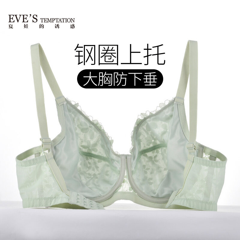 Eve's Temptation Lace Large Cup Bra Women's Big Chest Underwear Large Size Bra for Plump Girls Thin Full Cup Bra