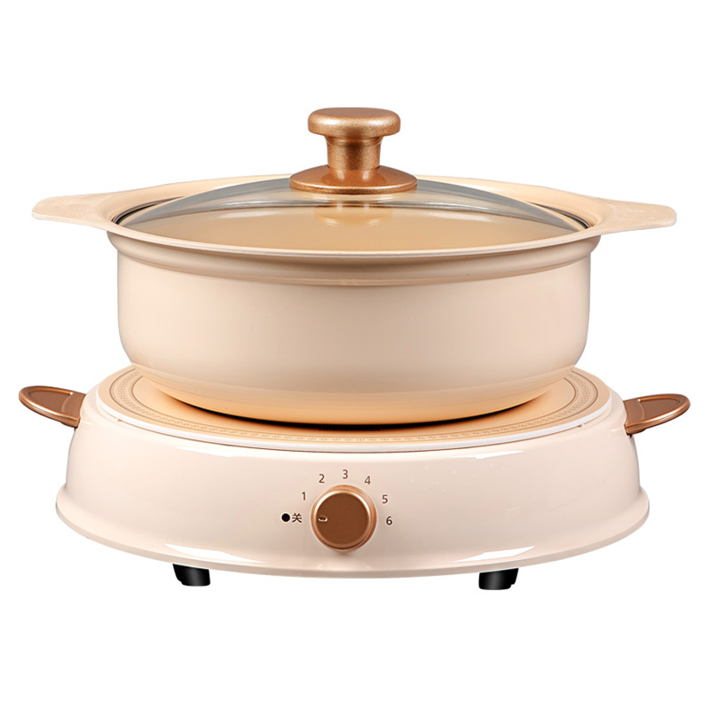 IRIS Ohyama Japan RICOPA Party IH Induction Cooker Ceramic Hot Pot Set, IHL-R14 Beige, IRIS Ohyama Cookware