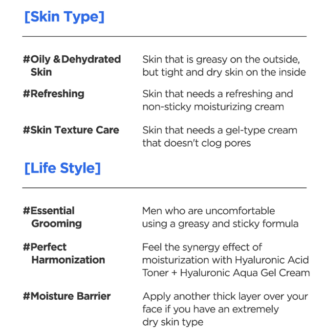 Five types of Hyalunronic Acid consisting of different sizes of molecyles procide abundant moisture to skin fast.