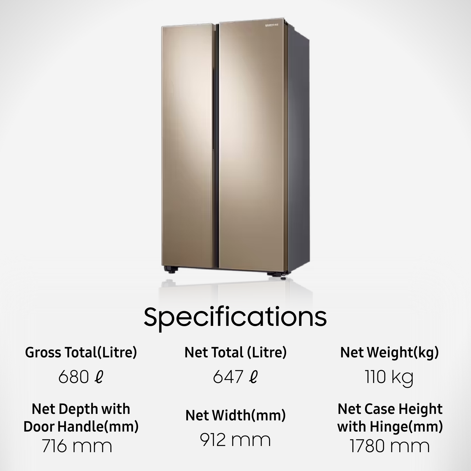 Samsung RS62R5006F8/SS, Side-by-side Refrigerator, 647L, 3 Ticks