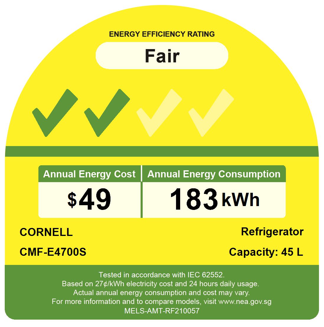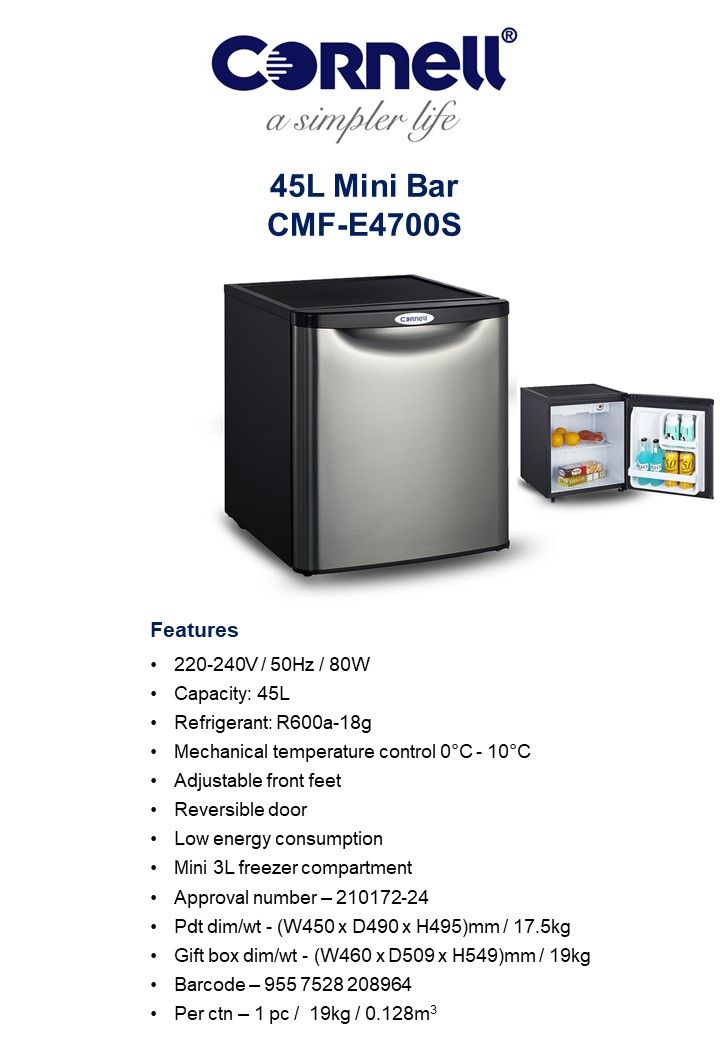 Cornell 45L Mini Bar Fridge CMFE4700S