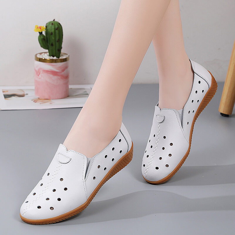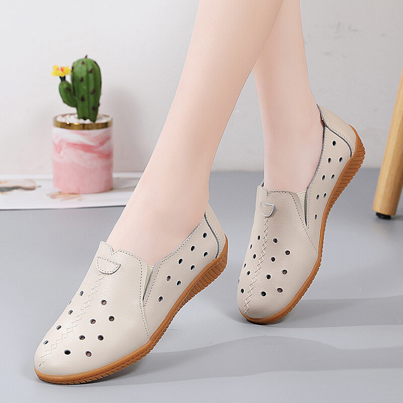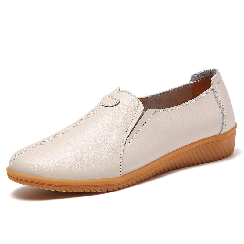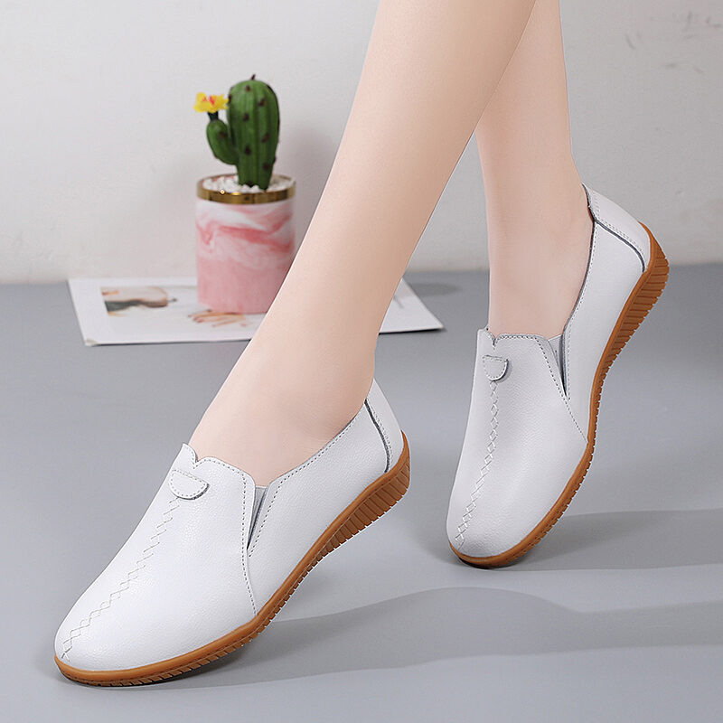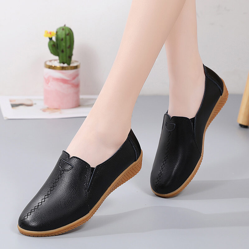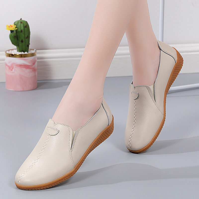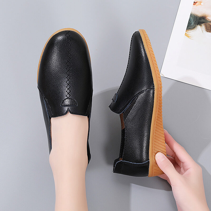2023 New Spring Women's Genuine Leather Shoes Large Size Soft Bottom Casual Flat Shoes Female Middle-Aged and Elderly Mom Shoes Children