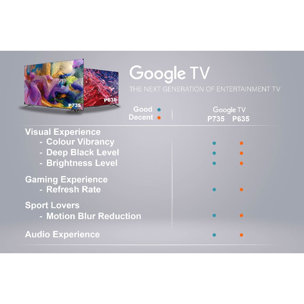 TCL P735 | P737 Google TV 43 50 55 65 75 85 inch | 4K HDR Bezel-less Slim Design | Google Assistant Duo | Wide Color Gamut | Dolby Cinematic Vision Atmos | HDMI | MEMC | Hands-Free Voice Control