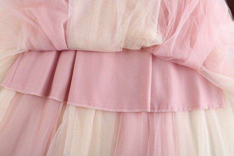 Sweet Summer Lace Up High Waist A-Line Long Tulle Skirt For Women Color Stitching Loose Mesh Fashion Maxi Ladies Bohemia Party Pleated Skirt C120
