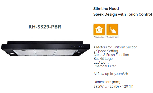 RINNAI RH-S329-PBR 90CM SLIMLINE HOOD WITH TOUCH CONTROL