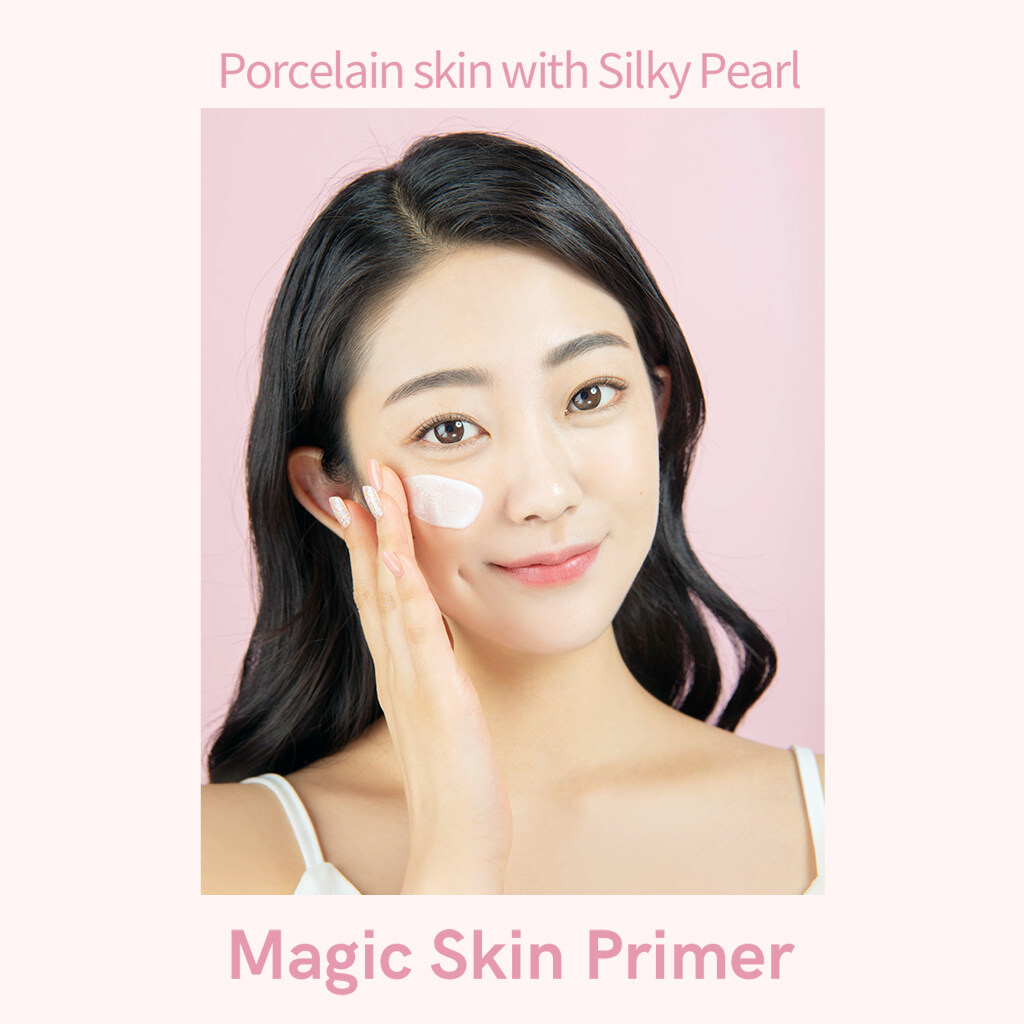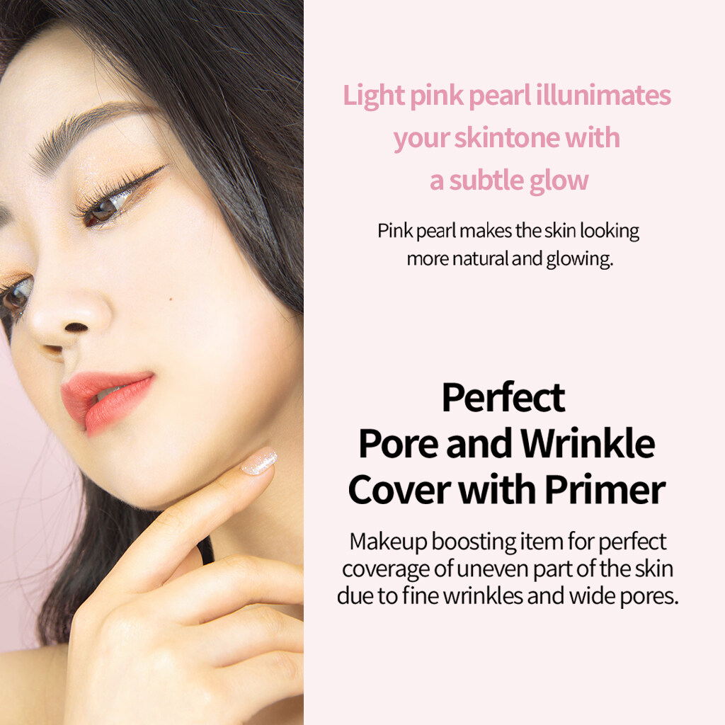 Pink pearl primer that smoothes the skin texture like silky soft for the way before foundation.