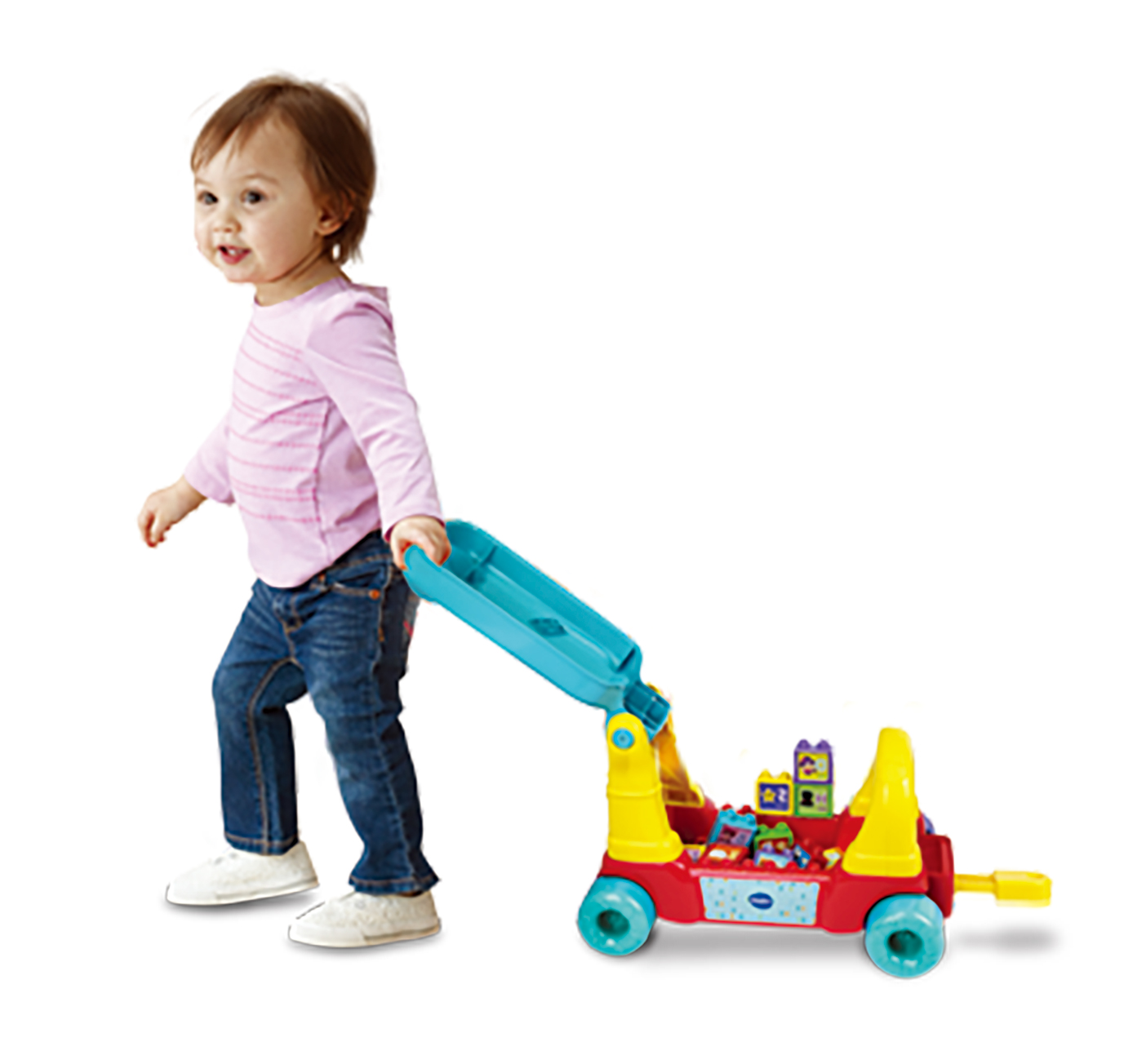 Are you ready to get rolling? Let’s chug along into learning fun with the 4-In-1 Alphabet Train by VTech! This 4-in-1 grow with me alphabet train includes modes for sit-down play, walker, pull-along wagon and ride on. Train includes 13 double-sided letter blocks and a magic tunnel to load the blocks into the wagon. You can also stack the blocks on the inside of the wagon and slide the blocks down! Also features a removable activity panel, light up number pad, turning book and manipulative gears. Teaches objects, animals, phonics, colours, numbers and much more. Includes 3 sing-along songs and 10 melodies. Encourages discovery & exploration, language development and motor skills.
