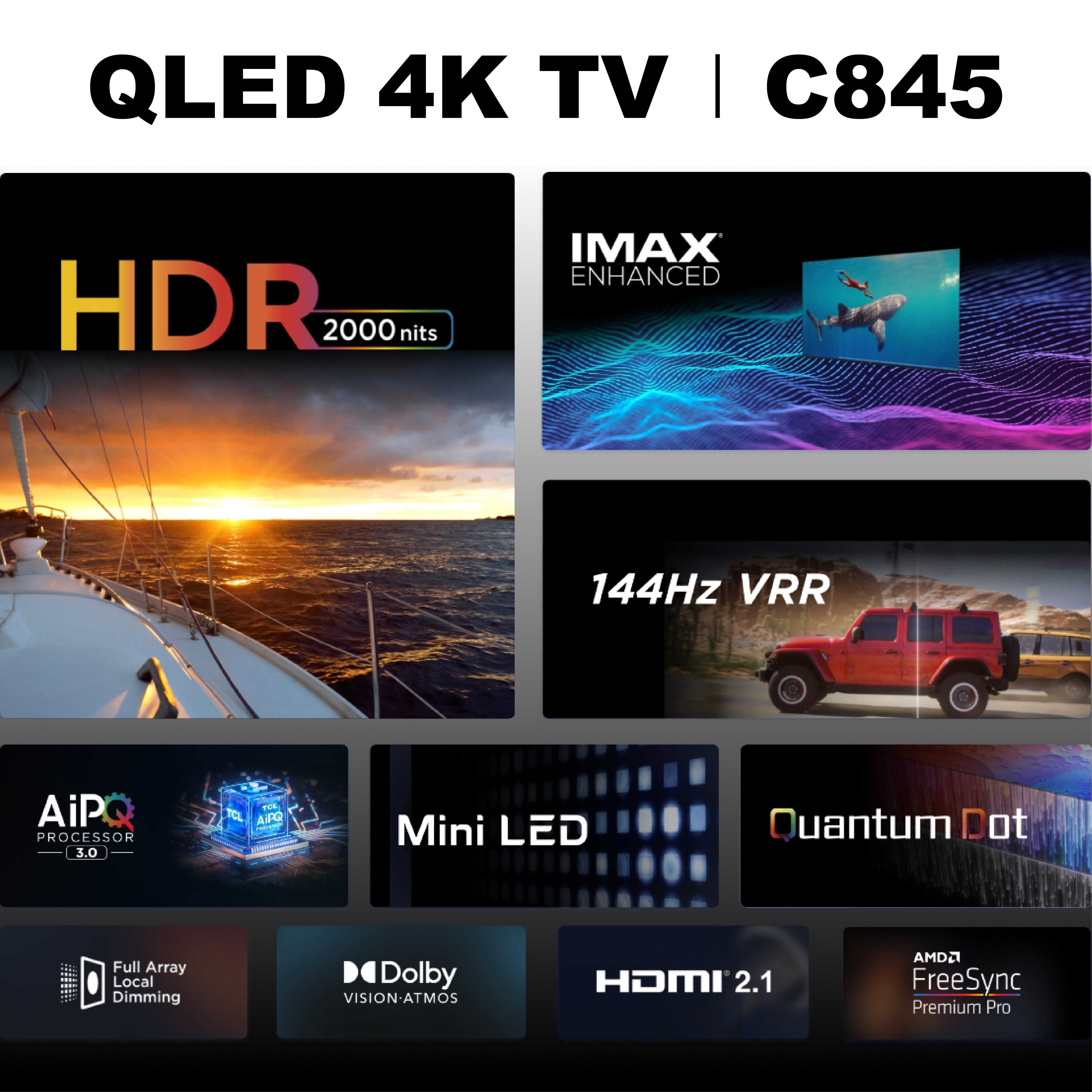 TCL C845 Mini LED Google TV Android TV 55 65 75 inch | HDR 10+ | IMAX Enhanced | Dolby Vision IQ | Dolby Atmos | Onkyo | MEMC | 144 Hz VRR
