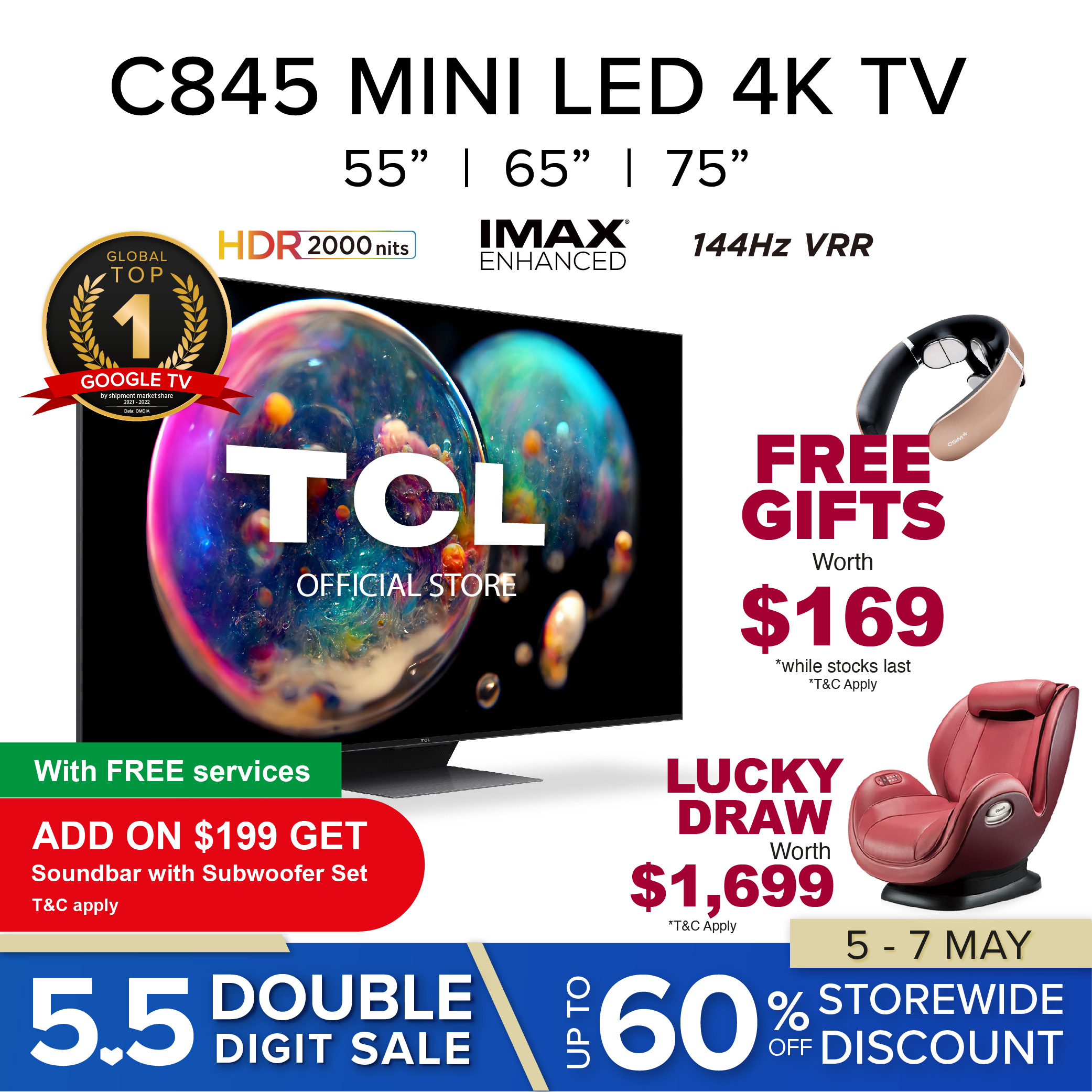 **Terms & Conditions for Redemption of Free Gift refer to TCL Website: https://www.tcl.com/sg/en/hari-raya-special