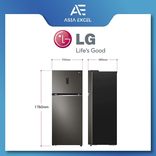 LG GT-B3952BL 395L BLACK STEEL TOP FREEZER INVERTER REFRIGERATOR