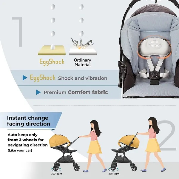 Mompush Wiz 2-in-1 Convertible Baby Stroller with Bassinet Mode - Foldable Infant Stroller to Explore More as a Family - Toddler Stroller with Reversible Stroller Seat