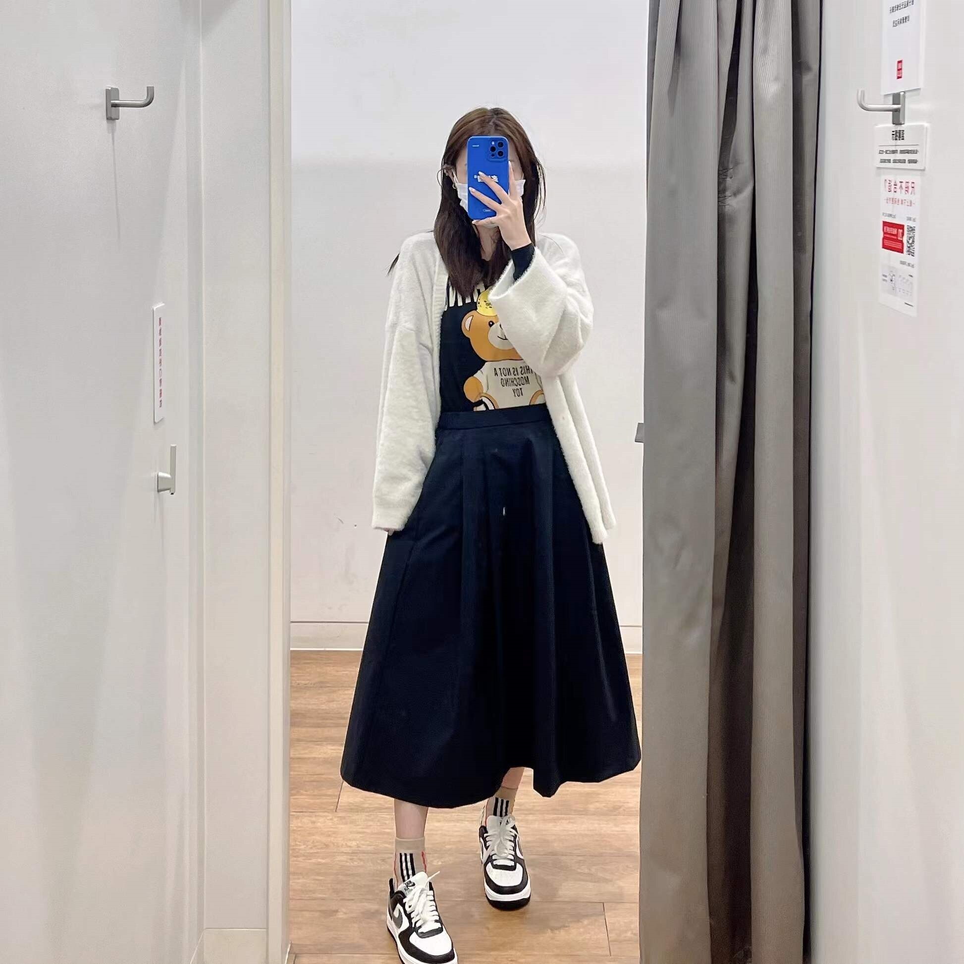 2023 New Uniqlo PXGˉTitleistKorean Fashion Versatile Fitting room women's spring pleated skirt elastic waist high waist skirt pleated skirt long skirt 449107