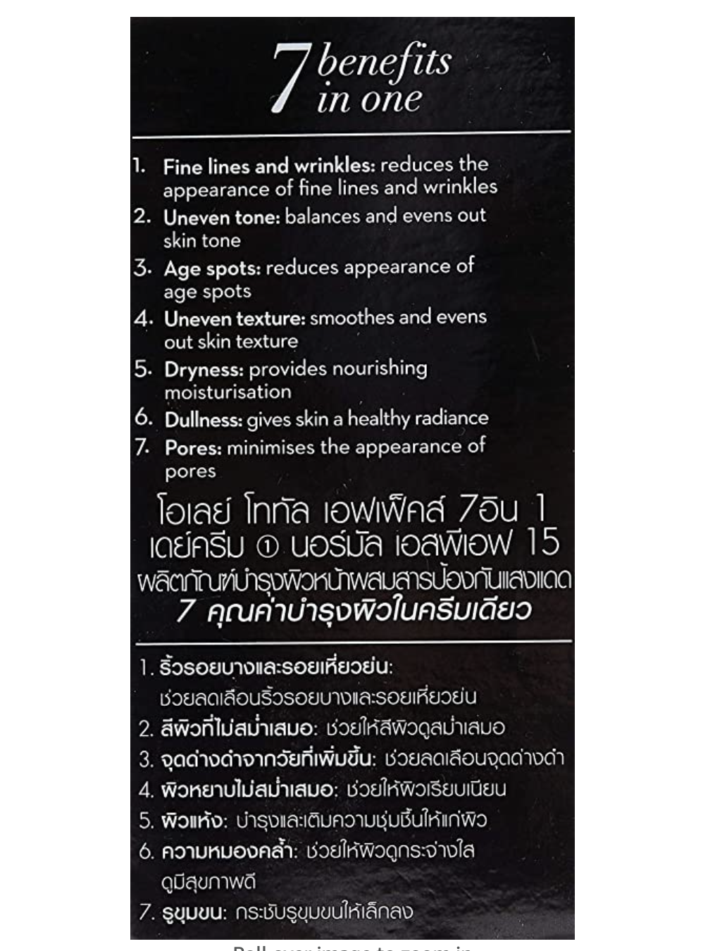 - A daily facial cream that provides 7 anti-ageing benefits in 1, plus SPF15 to help protect against sun exposure, the #1 cause of premature visible ageing.