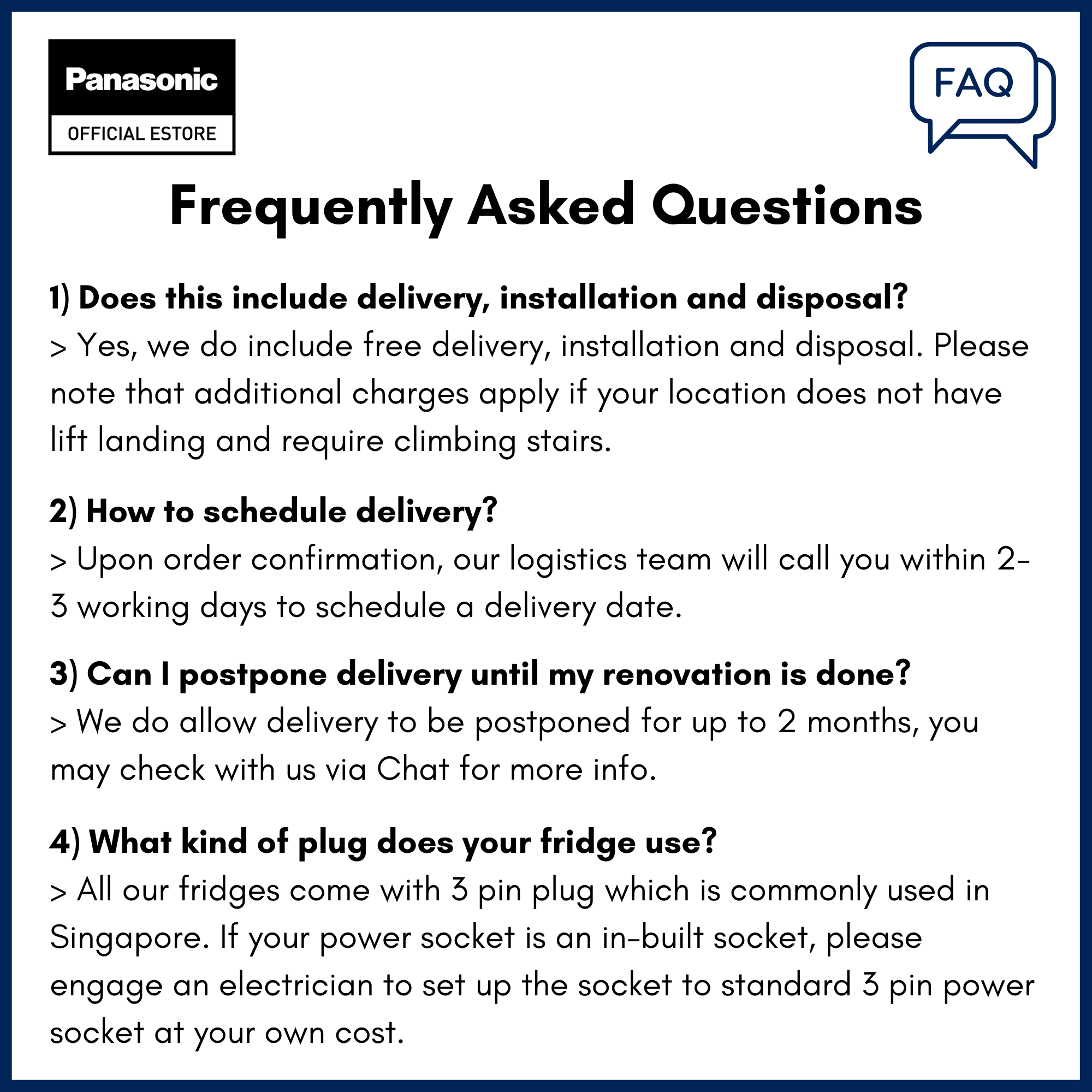 Note: Complimentary standard delivery, installation and disposal of old fridge. Charges apply for delivery to locations where staircases have to be used.