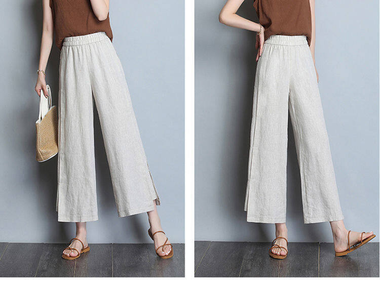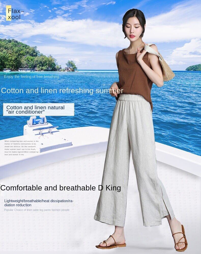 Wide leg pantsHigh waistedCotton and hempNinth pantsSimplified Commuting/Korean Version