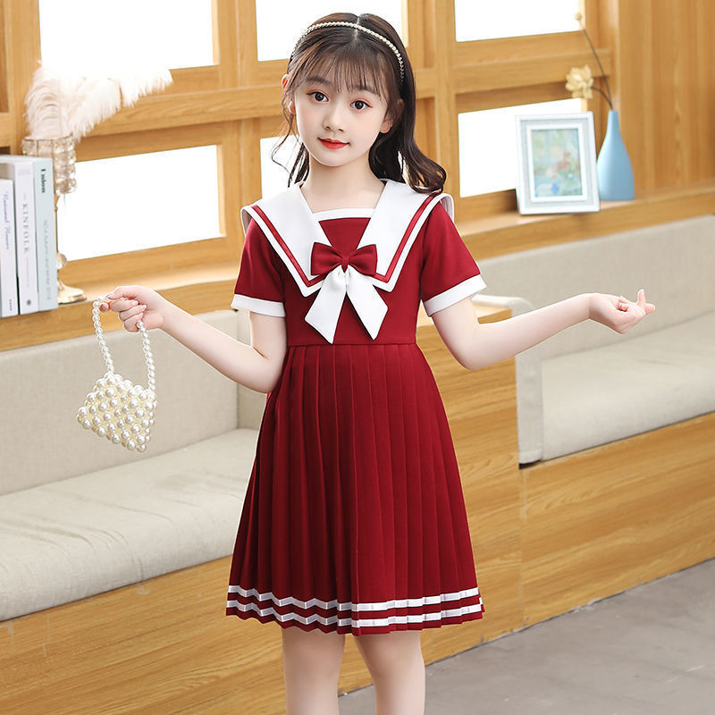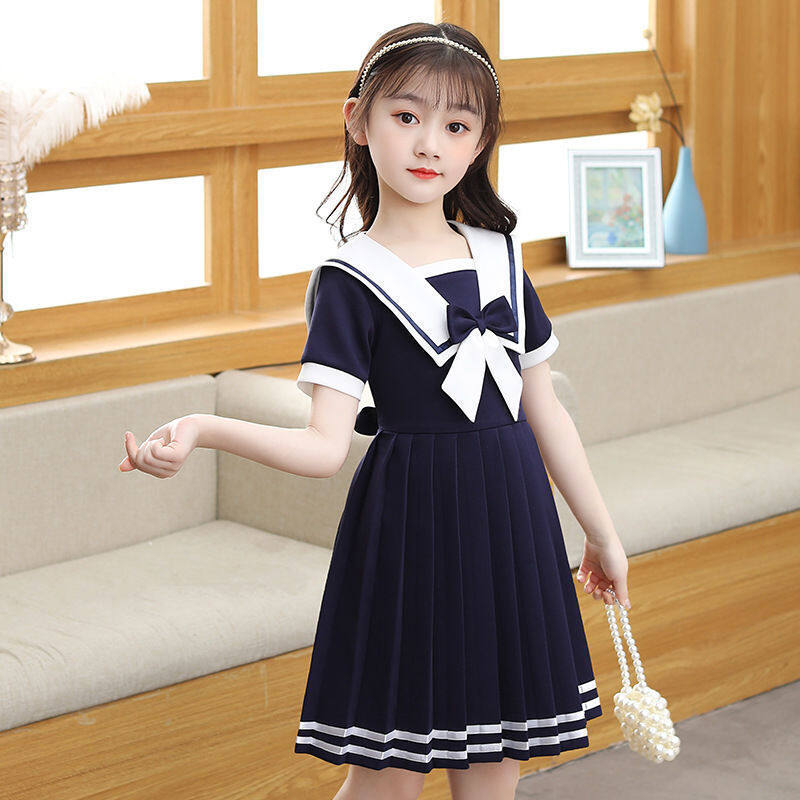 Cunjin Girls Short Sleeve Dress Summer Dress Western Style Children's Princess Skirt Lorita JK Navy Style Little Girl Skirt College Style 2 To 12 Year Old for Teens Girls Terno Sale