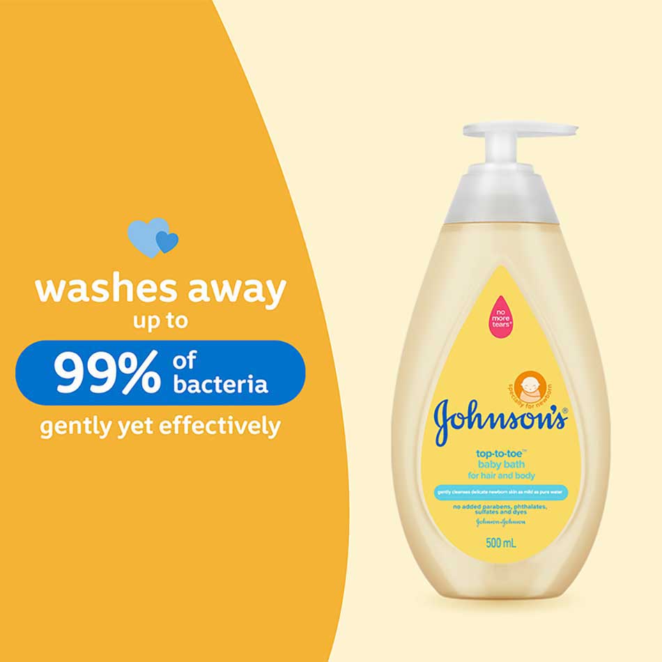 Johnson's Baby Top-to-Toe Wash is a convenient way to gently cleanse your baby's skin and hair without drying. With unique No More Tears formula, it is as gentle to eyes and skin as pure water. Country of origin