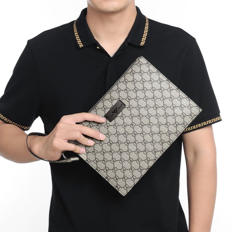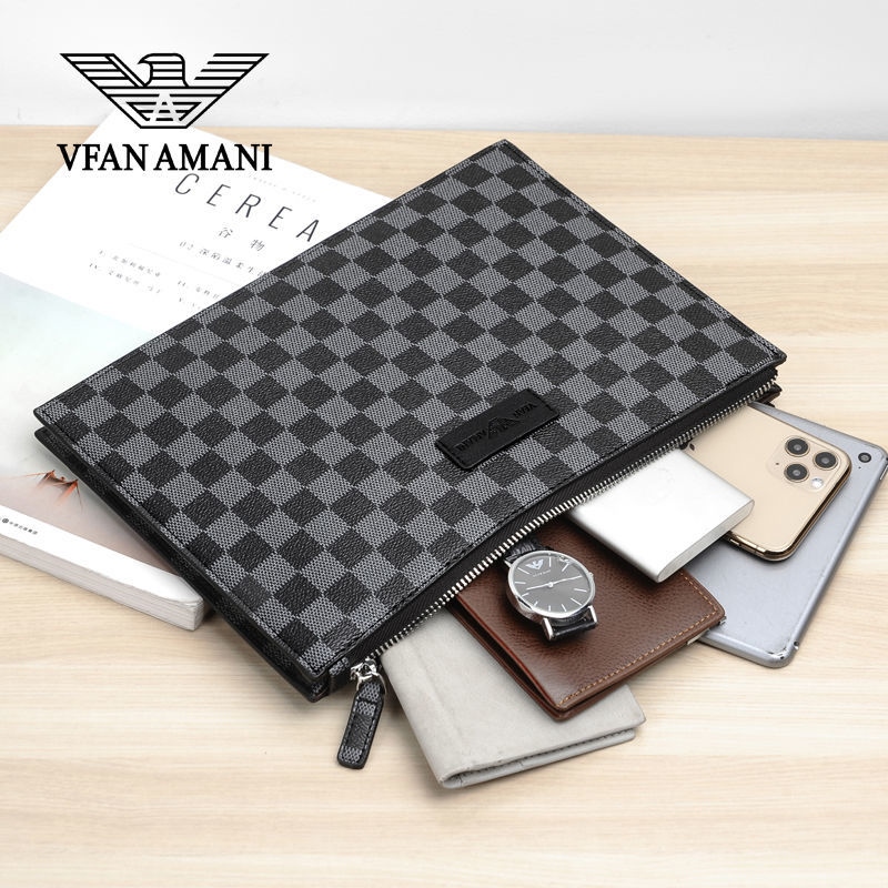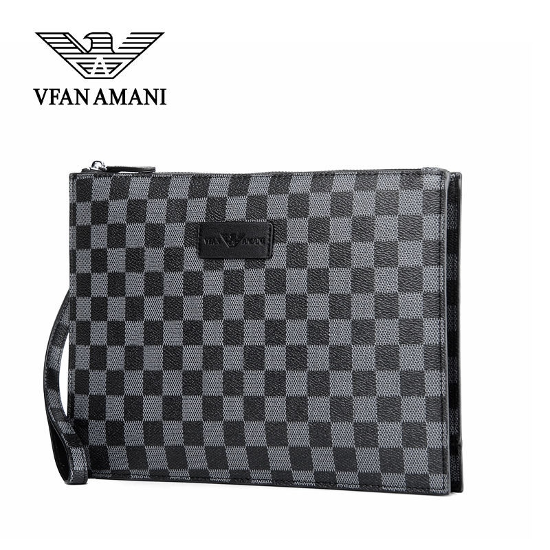 Weifang Armani men's handbag genuine leather clutch bag net red new plaid business clip envelope tide
