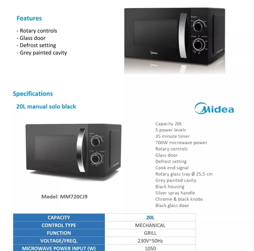 Midea 20L Tabletop Microwave Oven MM720CJ9 | MM 720CJ9 (2 Years Warranty)