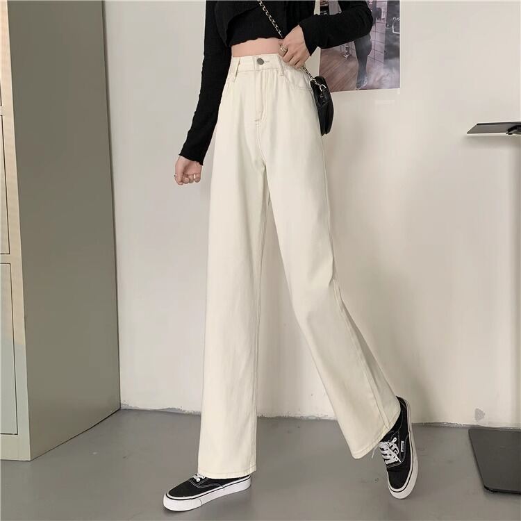 Summer Wide-Leg Pants Spring & Fall 2024 New Style White Denim Women's High Waist Straight-leg Loose Cargo Long Pants Slim Looking