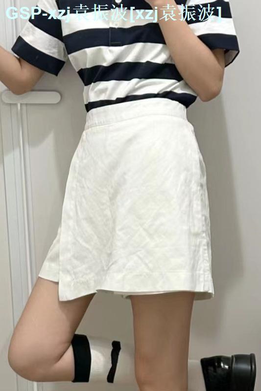 original Uniqlo New Fashion version U home 2023 summer hemp blended hakama pants mini skirt casual ladies slim skirt 456277