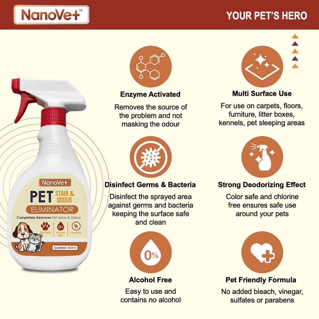 Nanovet™ Pet Stain Urine and Odour Eliminator for Cat and Dog