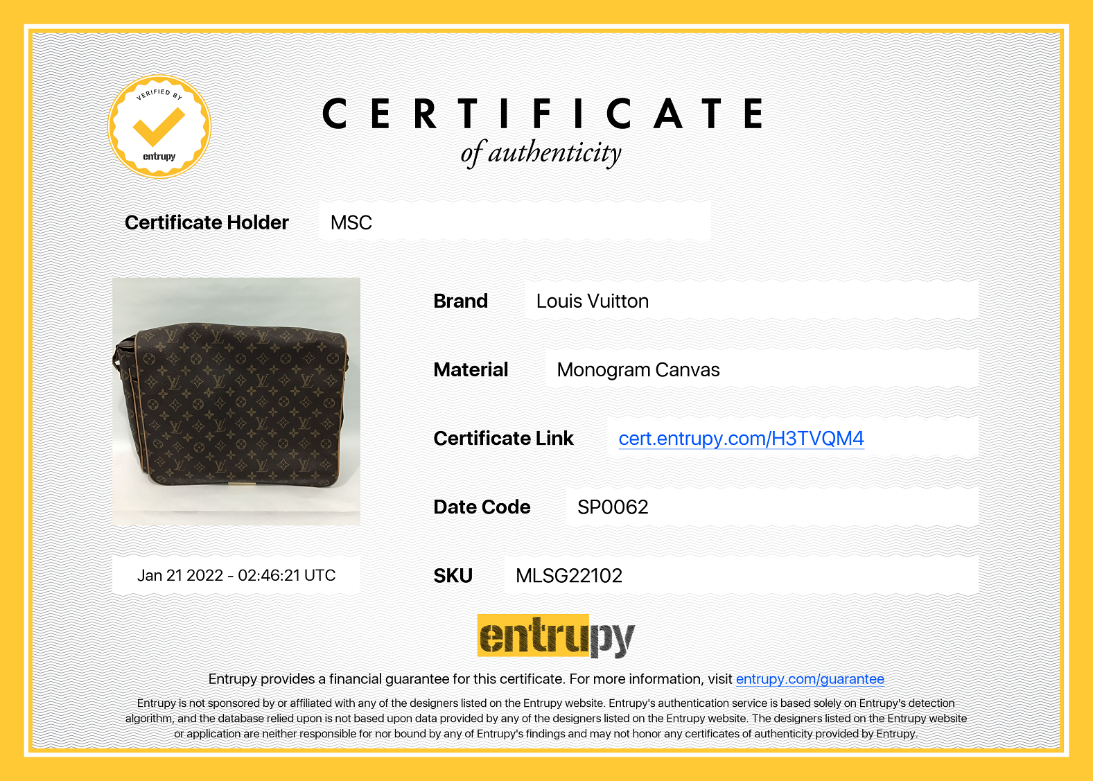 Authentication done by our professional In house bag expert and come with certificate authentication from Entrupy