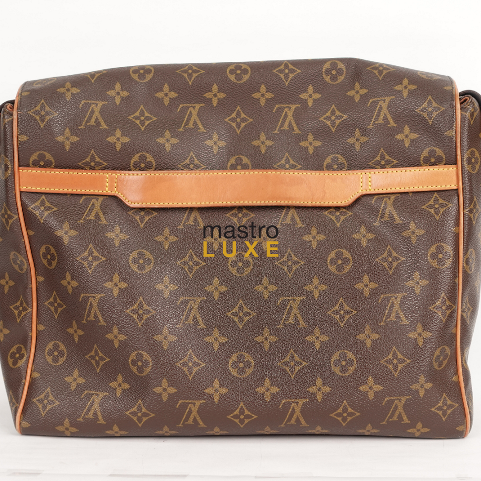 It features a large flap, two interior pockets, an exterior strap attaches the bag to carry-on luggage for extra convenience when traveling. It also comes with an adjustable shoulder strap embroidered with the Louis Vuitton logo.
