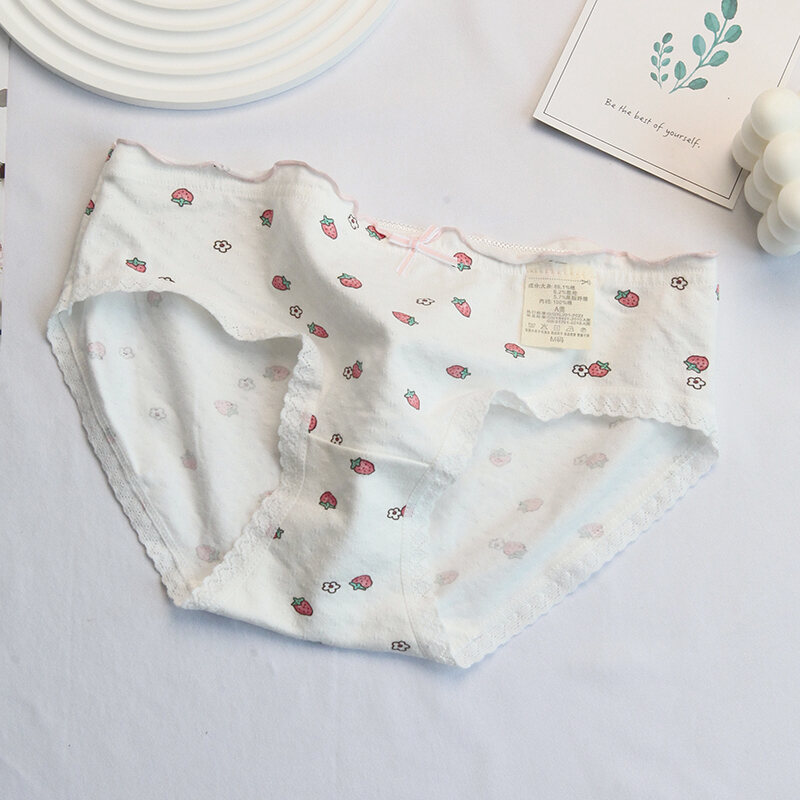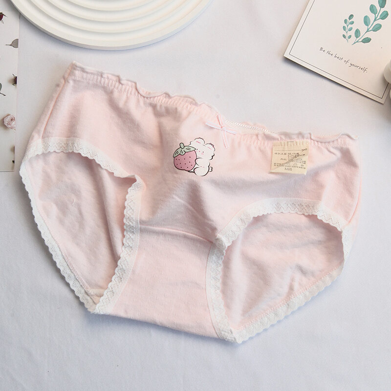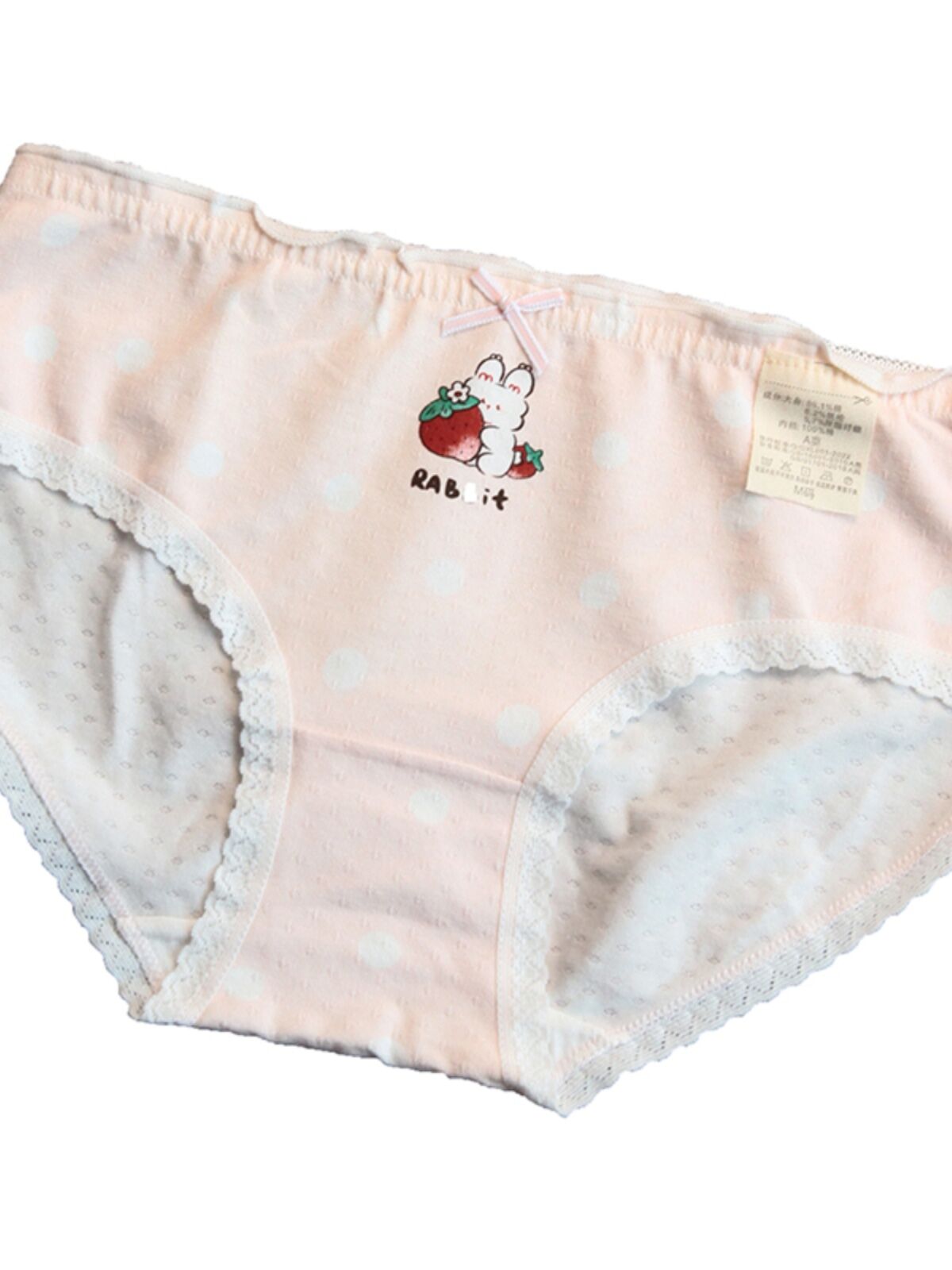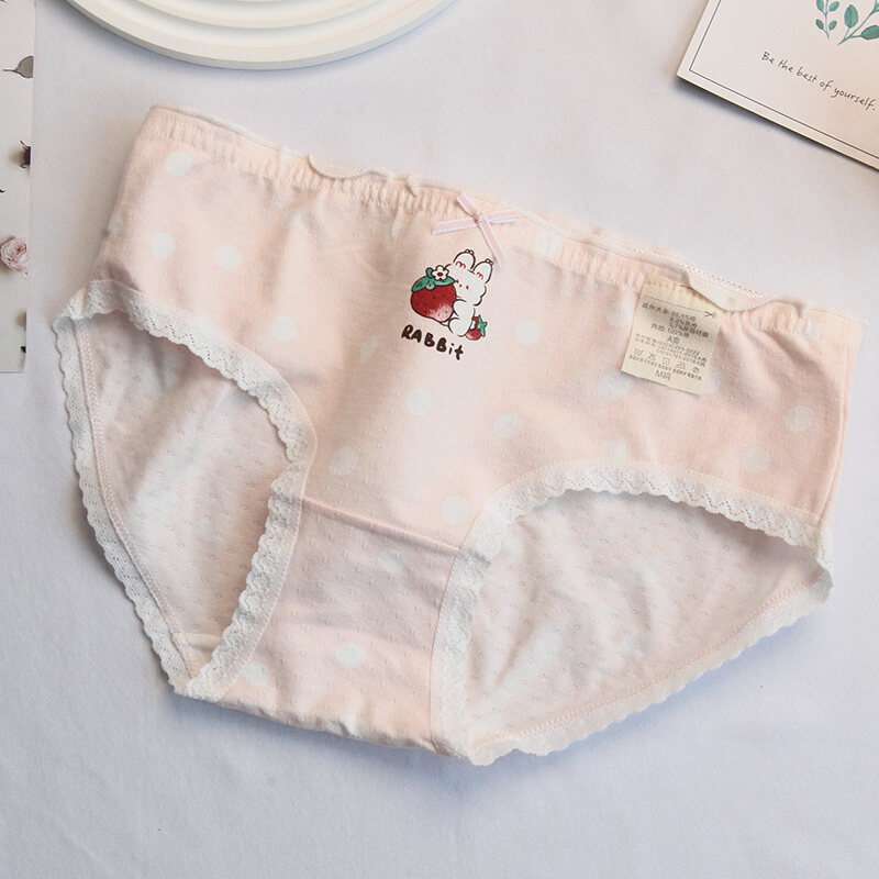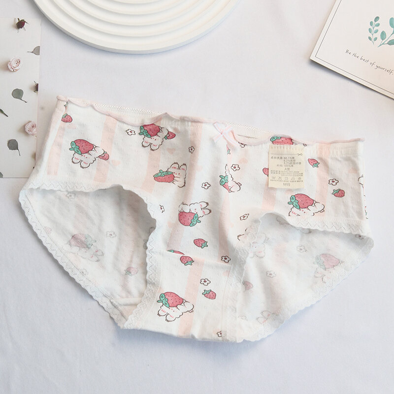 Pink and White Strawberry Adorable Rabbit Cute Young Adult Underwear Low Waist Bow Breathable Purified Cotton Crotch Student Briefs
