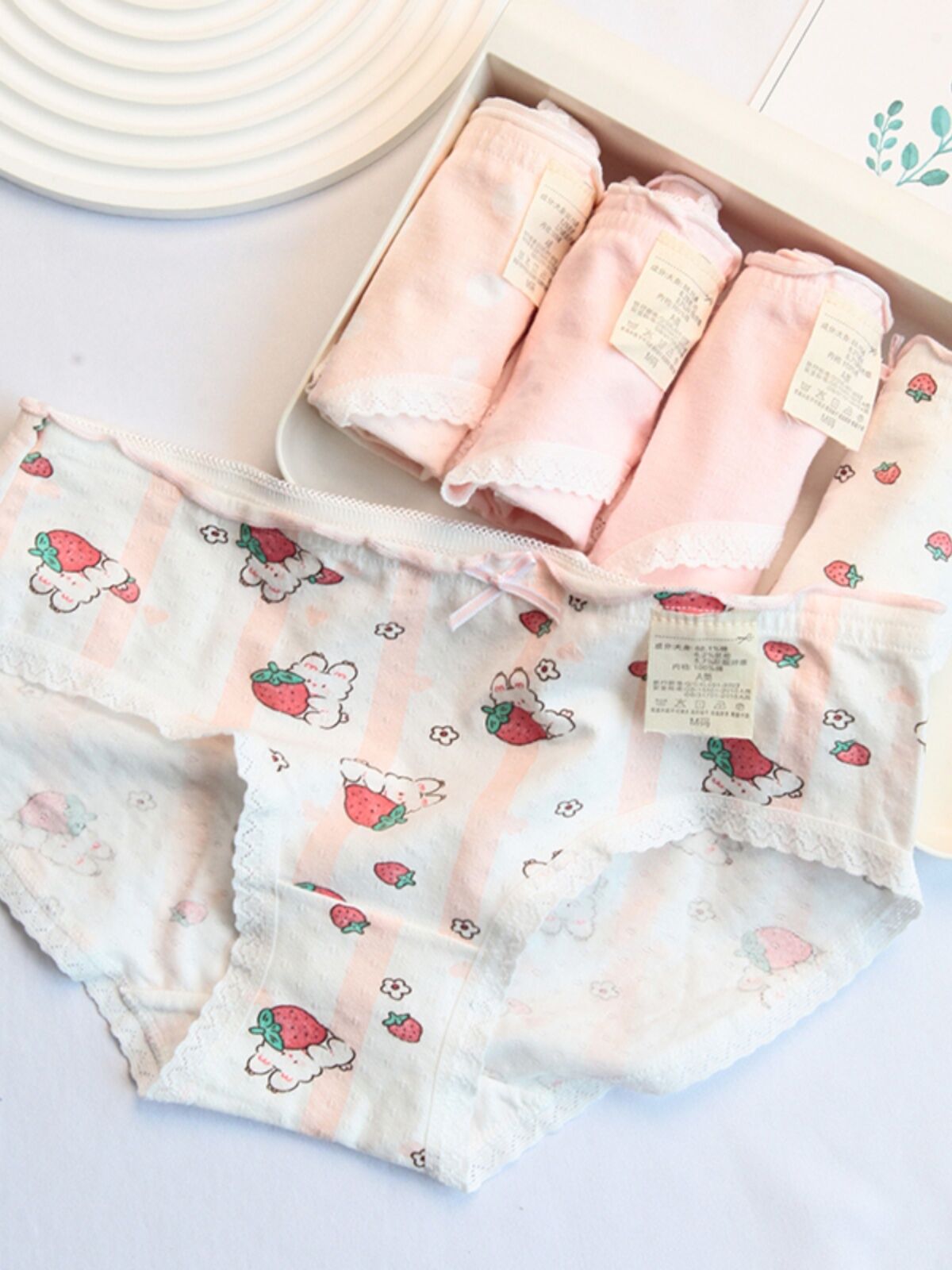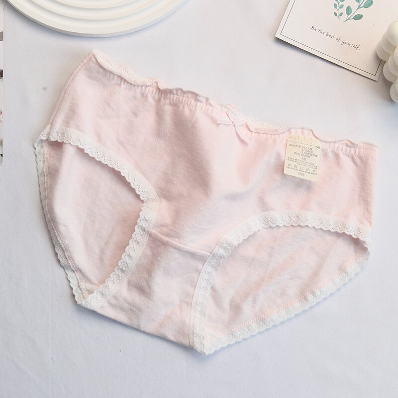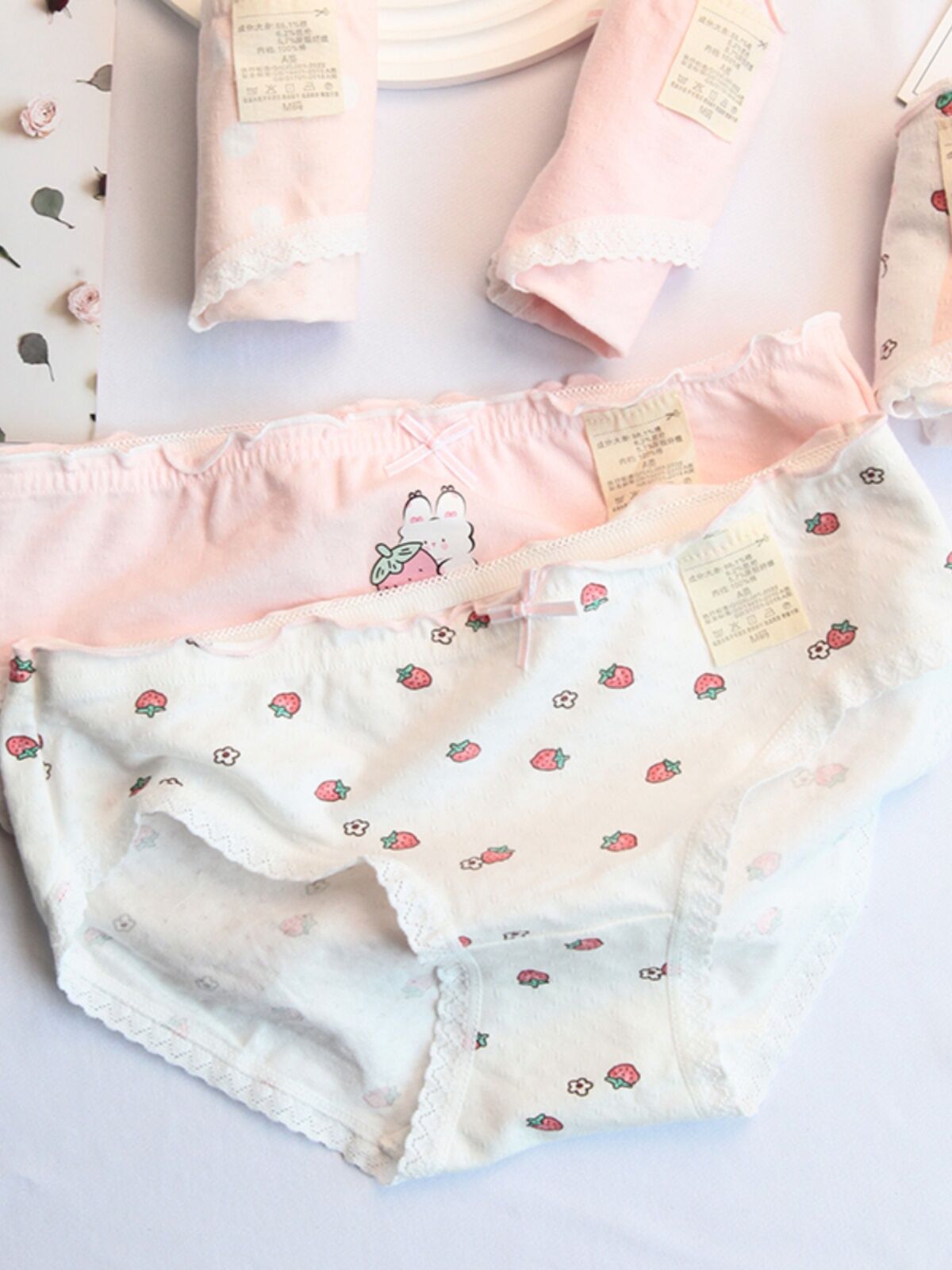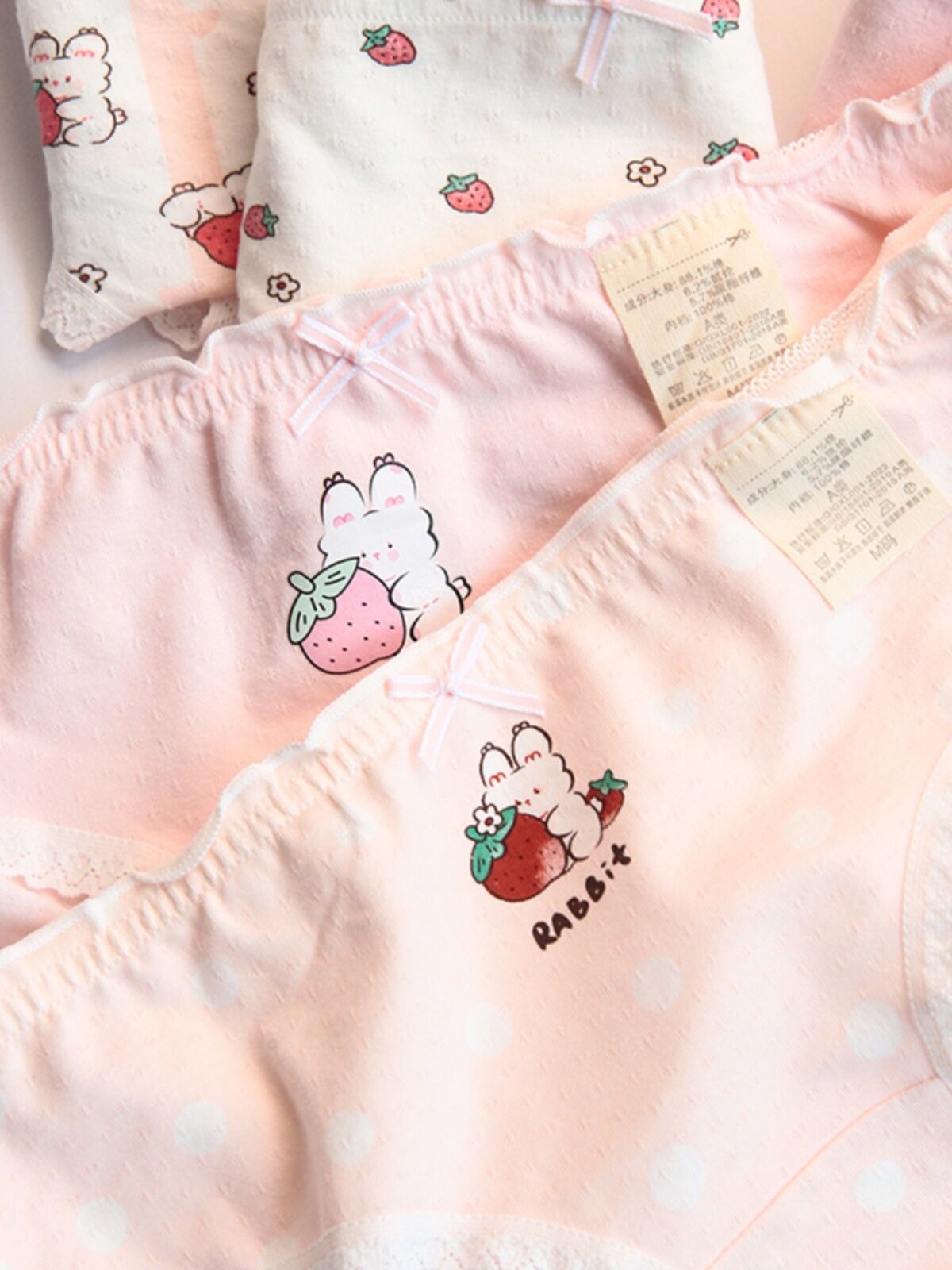 Pink and White Strawberry Adorable Rabbit Cute Young Adult Underwear Low Waist Bow Breathable Purified Cotton Crotch Student Briefs