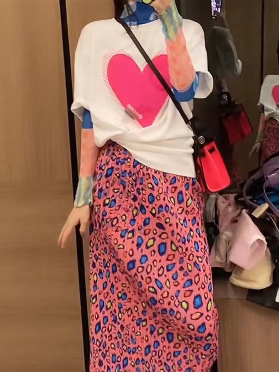 100.00kg Chubby Girl Summer K-style Women's Mid Length Long Length A- line Skirt Elastic Waist One Breasted Pocket plus Size Skirt