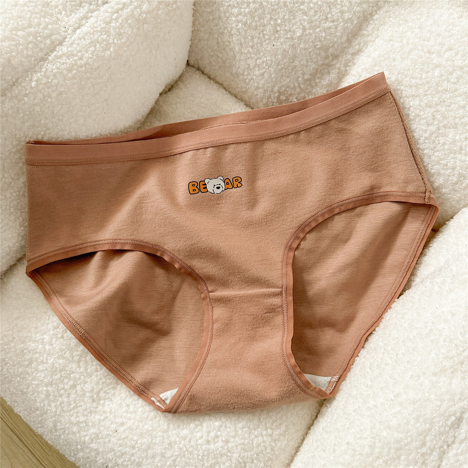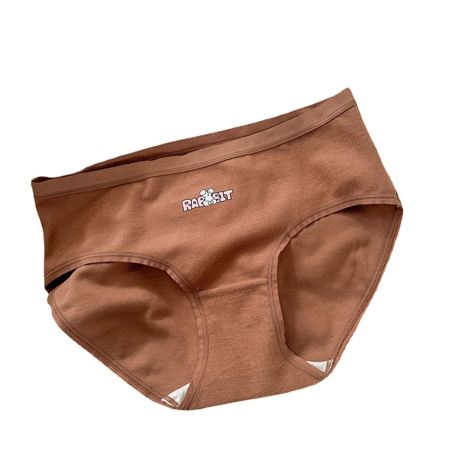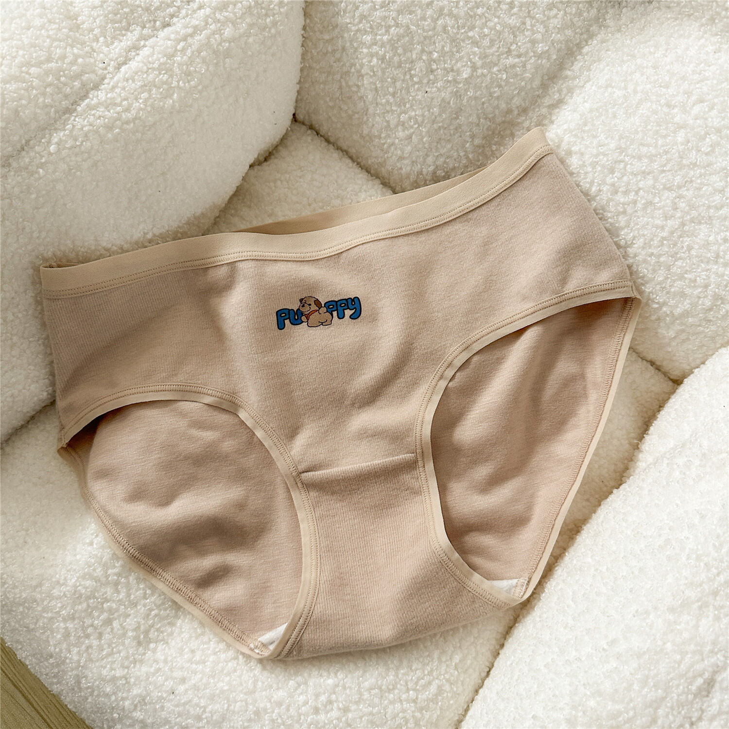 Cat and Dog ~ Adorable Pet Mid-Rise Women's Underwear Earth Color Briefs Textured Cartoon Underwear Female plus Size