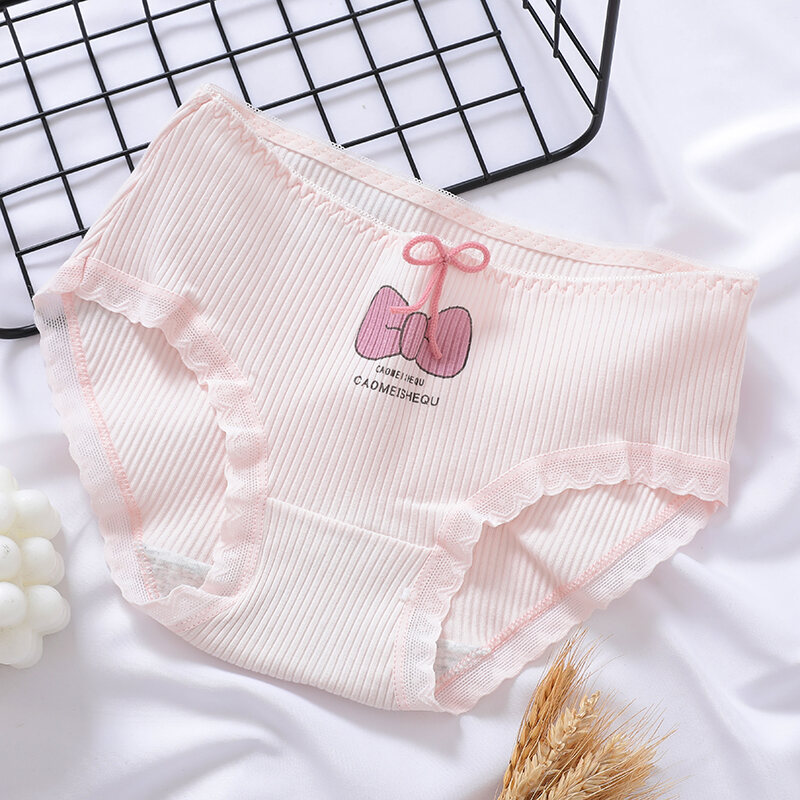 Japanese Style Soft and Adorable Cat's Paw Young Adult Underwear Thread Cotton Cute Rabbit Ear Mid Waist Bows Briefs Breathable