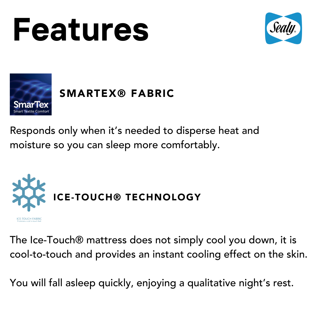 Sealy’s AlignSupport spring technology senses your body’s weight to provide the deep down correct support your body needs. Inside the Elevate Ultra range are unique components built to meet orthopaedically specified criteria, ensuring you wake up feeling alert, energised and ready to take on the day. Your body and mind elevated, thanks to the natural rejuvenation of unbroken, quality sleep.