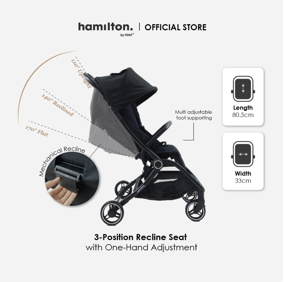Hamilton S2 Stroller | MagicFold™ Black/ Khaki colours (Cabin size 6.8kg)