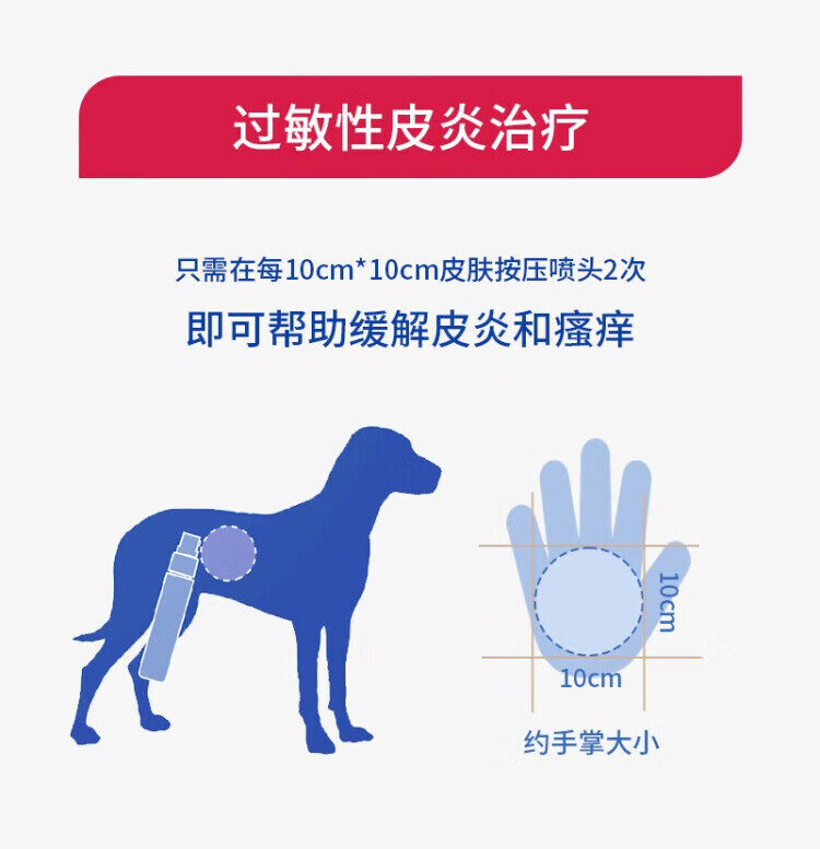 Instructions for use: Just press the nozzle 2 times on every 10cm*10cm of skin to help relieve dermatitis and itching