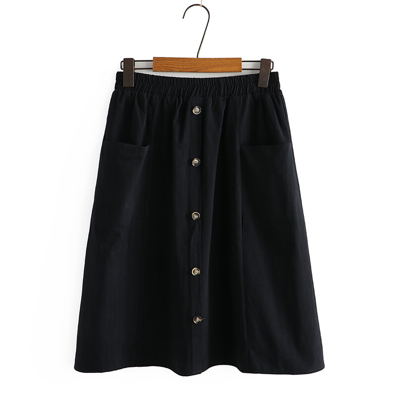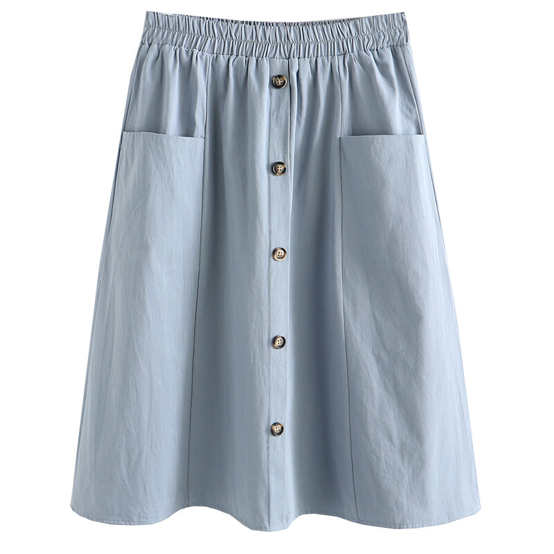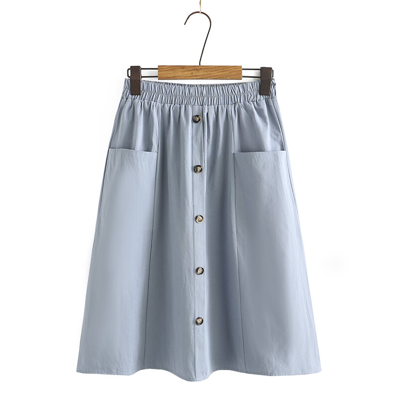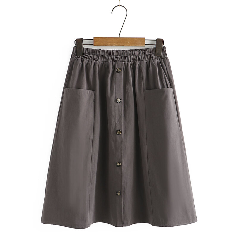 100.00kg Chubby Girl Summer K-style Women's Mid Length Long Length A- line Skirt Elastic Waist One Breasted Pocket plus Size Skirt