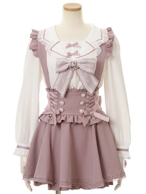 LizLisa Japanese Style Girlish Style Mine Series Mass-Produced Ribbon Bows Pearl Buckle Removable Suspender Skirt
