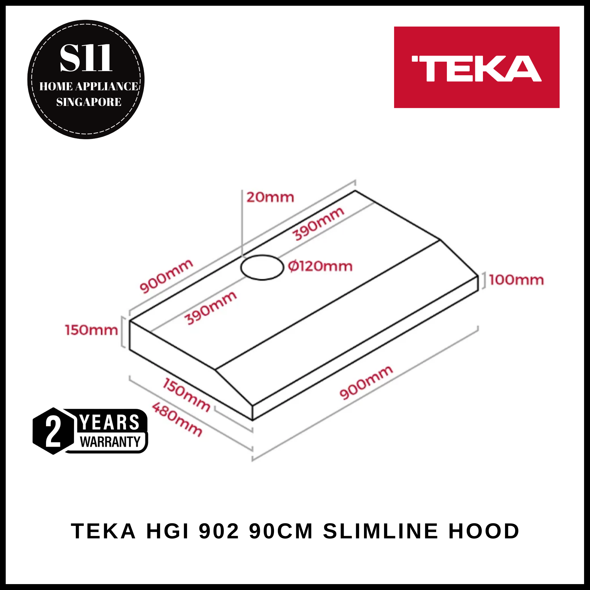 TEKA HGI 902 90CM SLIMLINE HOOD + 2 YEARS WARRANTY