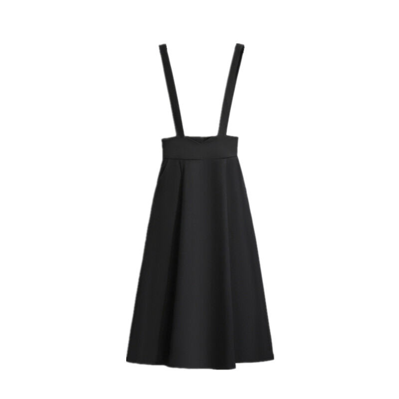 Stylish Suspender Skirt Women's Mid Length Long Length Suit Skirt Summer Slimming High Waist A- line Umbrella Skirt Drape Black Skirt