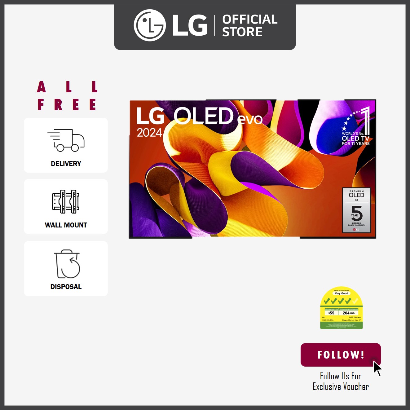 [NEW] LG OLED55G4PSA OLED 55'' evo G4 4K Smart TV + Free Delivery + Free Wall-Mount Installation Worth up to $200