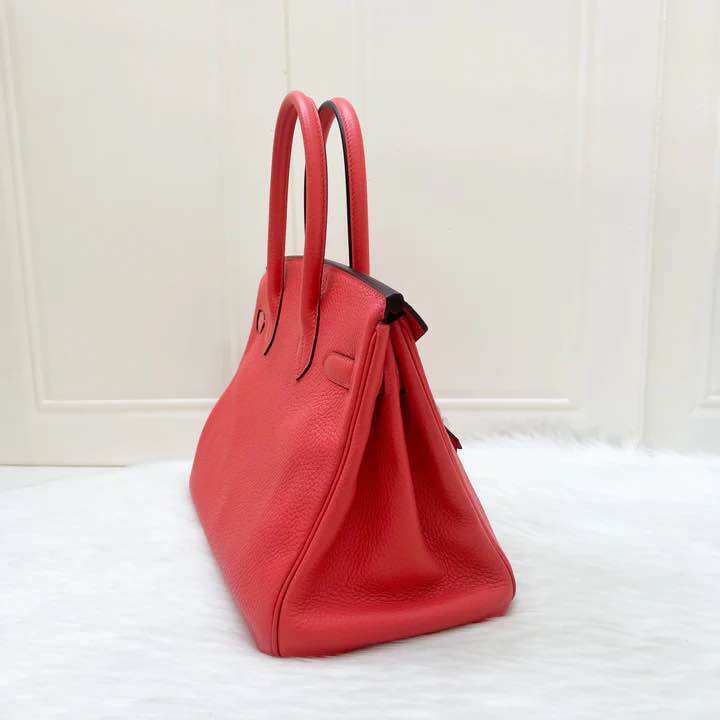 (Pre-loved) Hermes Birkin 30 in Coral Pink (Likely Rose Jaipur) Clemence Leather and PHW