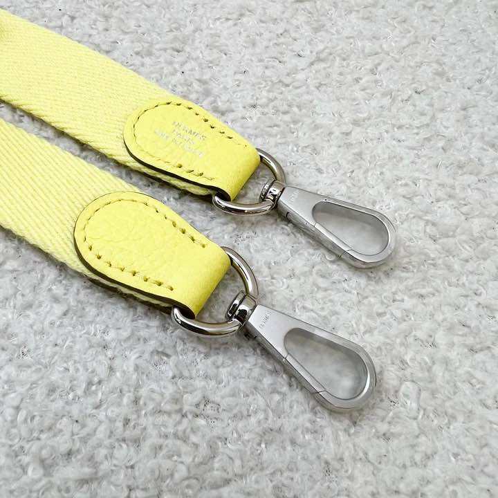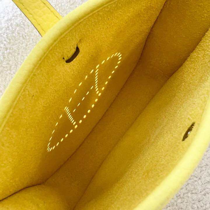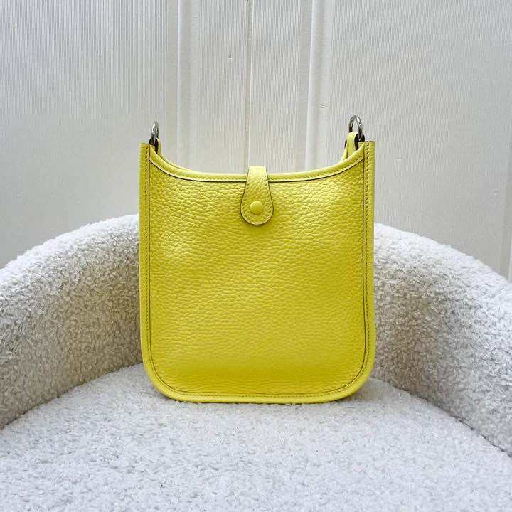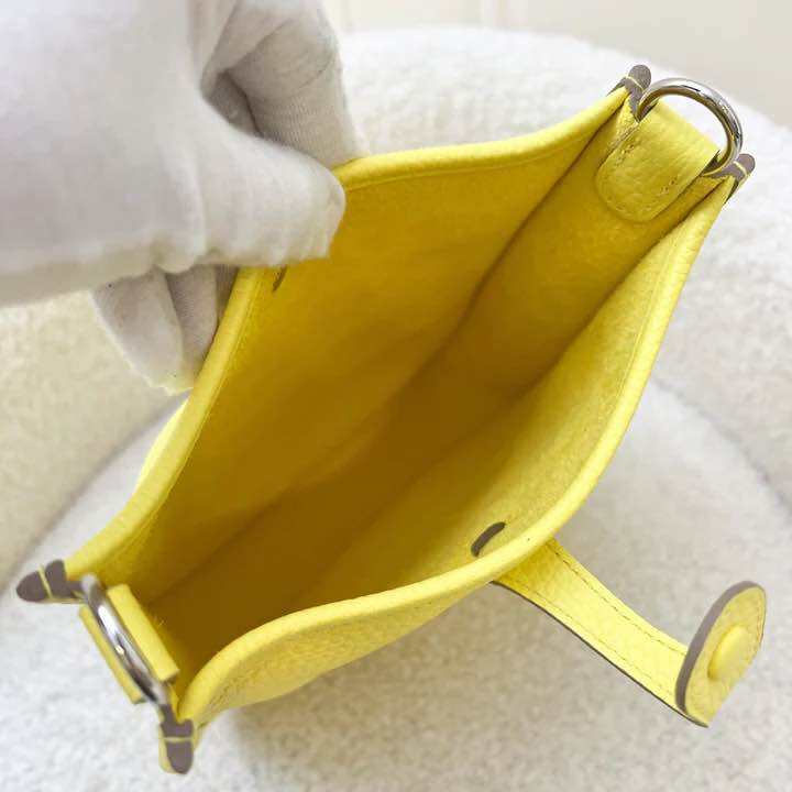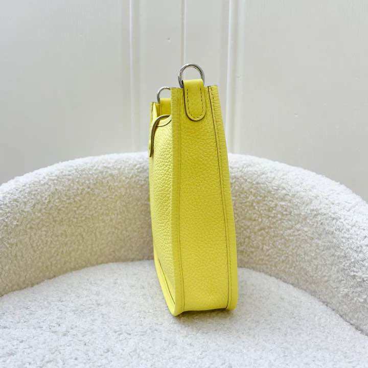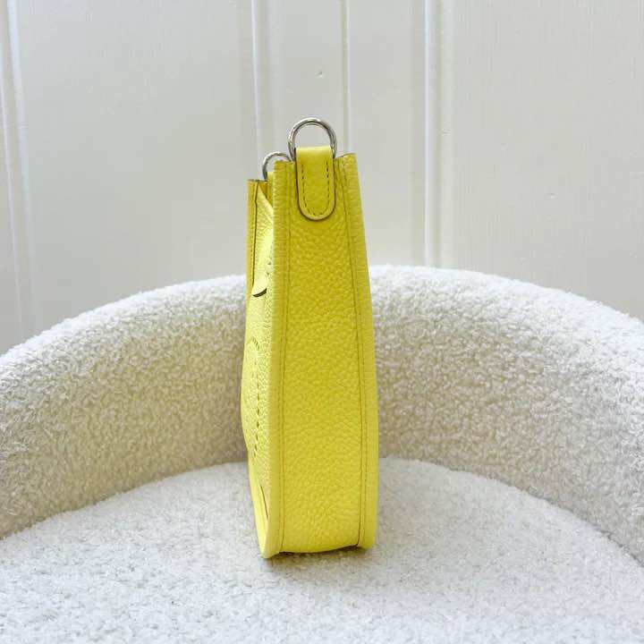 (Brand new) Hermes Mini Evelyne 16 in Limoncello Clemence Leather, Canvas Strap and PHW