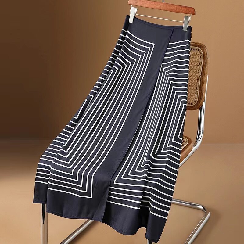 MISUMIXIU High End Hepburn Style Irregular Striped Half Skirt for Women's Summer 2024 New French Light Luxury Temperament Half Skirt