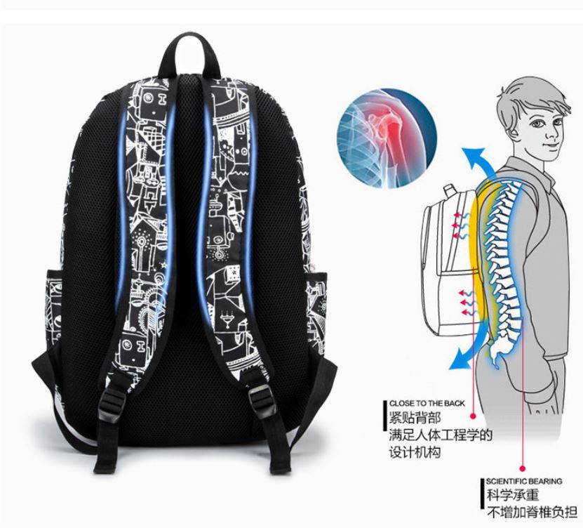 Unisex Waterproof Primary 3 to Secondary school ergonomic backpack canvas shoulder bag for boys and girls, 小学中学学生减负保护脊椎书包