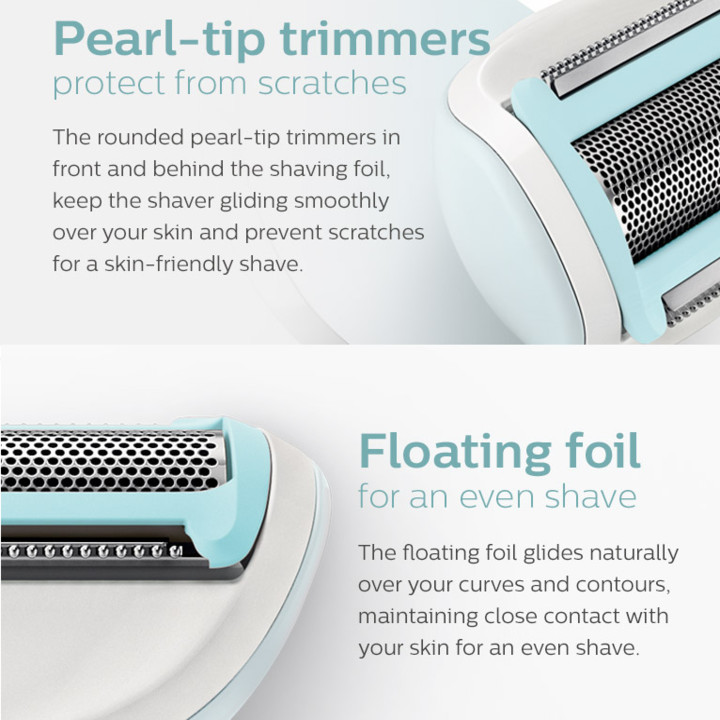 Glides smoothly for a skin-friendly shave Experience a close yet gentle shave on your legs and body. The SatinShave Advanced ladyshaver gives you smooth skin, even in the shower or bath. Achieve hair-free skin without irritation, easily and conveniently. Glides smoothly for a skin friendly shave ·Single foil shaver ·8hr recharge ·