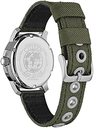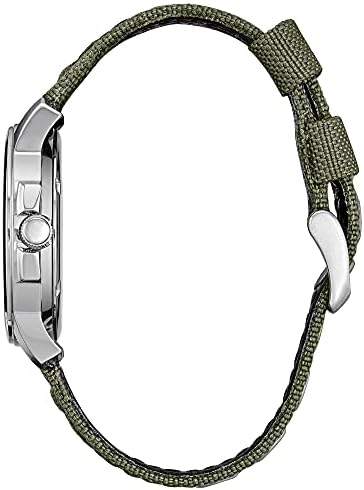 Citizen Men's Sport Casual Garrison 3-Hand Day/Date Eco-Drive Nylon Strap Watch, Arabic Markers, 100 Meters Water Resistant, Luminous Hands and Markers
