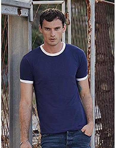 Short sleeve Ringer T-Shirt. Cotton/Lycra rib crew neck with taped neckline for comfort. Produced using Belcoro yarn for a softer feel and cleaner printing process. Fine knit gauge for enhanced printability. Weight: 160-165g/m².