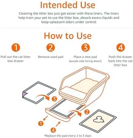 INCLUDES: 40 Unscented cat litter pads for use with a pull-out-drawer litter box system (not included) DURABLE: Strong PE film with a super absorbent core and effective moisture lock underneath VERSATILE: For use in litter box or in a cat carrier when transporting; 1 size fits most litter boxes; suitable for homes with 1 or multiple cats EASY CLEANUP: No more scrubbing and scraping litter boxes; disposable for quick, easy cleanup ODOR CONTROL: Absorbs excess liquid seeping through litter; helps control unpleasant odors PRODUCT DIMENSIONS: 16.9 x 11.4 x 0.14 inches (LxWxH) #87 in Pet Supplies ( ) #4 in